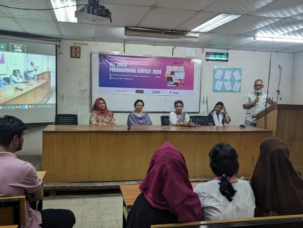 আন্তর্জাতিক গার্লস ইন আইসিটি দিবস ২০২৪ উপলক্ষে বাংলাদেশের তথ্যপ্রযুক্তি প্রতিষ্ঠান দোহাটেক নিউ মিডিয়ার অনুপ্রেরণায় এবং টাফ ডট কো- এর সহযোগিতায় বুধবার সকালে ঢাকা বিশ্ববিদ্যালয়ের তথ্যপ্রযুক্তি ইনস্টিটিউটে এ প্রোগ্রামিং প্রতিযোগিতার আয়োজন করা হয়।