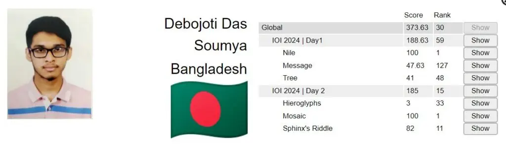 টেকসিঁড়ি রিপোর্ট : প্রথমবারের মতন একজন বাংলাদেশী হিসেবে ইন্টারন্যাশনাল ইনফরমেটিক্স অলিম্পিয়াডের স্বর্ণপদক জিতেছেন দেবজ্যোতি দাস সৌম্য।