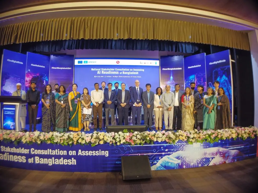 ১০ জুলাই ২০২৪, বুধবার ঢাকার আইসিটি টাওয়ারের বিসিসি অডিটরিয়ামে কৃত্রিম বুদ্ধিমত্তার (এআই) নিরাপদ, বিশ্বস্ত এবং নৈতিক ব্যবহার সম্পর্কে বাংলাদেশের প্রস্তুতি নিয়ে তথ্য ও যোগাযোগ প্রযুক্তি বিভাগ, জাতিসংঘ শিক্ষা, বিজ্ঞান ও সংস্কৃতি সংস্থা (ইউনেস্কো) এবং এসপায়ার টু ইনোভেট – এটুআই – এর সহযোগিতায় একটি মতবিনিময় সভা আয়োজিত হয়।