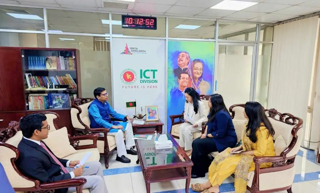 ডাক, টেলিযোগাযোগ ও তথ্যপ্রযুক্তি প্রতিমন্ত্রী জুনাইদ আহমেদ পলকের সাথে বাংলাদেশে মেটার পাবলিক পলিসির প্রধান রুজান সারওয়ার, প্রাইভেসি, এআই ম্যাটার এক্সপার্ট আরিয়ান জিমেনেজ এবং কনটেন্ট বিশেষজ্ঞ নয়নতারা নারায়ণ দেখা করেন।