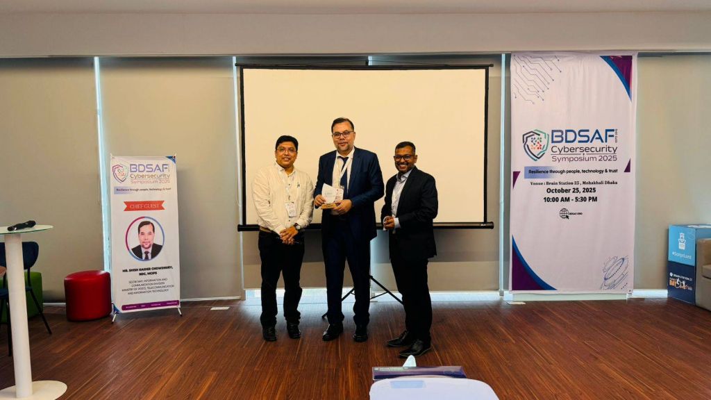 টেকসিঁড়ি রিপোর্টঃ বাংলাদেশের ডিজিটাল সক্ষমতা বাড়াতে কৌশলগত জাতীয় উদ্যোগের কথা ঘোষণা করলেন তথ্য ও যোগাযোগ প্রযুক্তি (আইসিটি) সচিব মি. শিশ হায়দার চৌধুরী। শনিবার, ২৫ অক্টোবর, অনুষ্ঠিত বিডিএসএএফ সাইবার সিকিউরিটি সিম্পোজিয়াম ২০২৫-এর সমাপনী অনুষ্ঠানে প্রধান অতিথির বক্তব্যে তিনি এই ঘোষণা দেন।