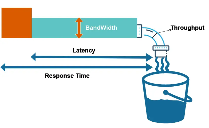 লেটেন্সি:লেটেন্সি হল একটি নেটওয়ার্কের এক বিন্দু থেকে অন্য বিন্দুতে ডেটা যেতে সময় লাগে। ধরুন নিউইয়র্কের সার্ভার A লন্ডনের সার্ভার B-এ একটি ডেটা প্যাকেট পাঠায়। সার্ভার A প্যাকেট পাঠায় 04:38:00.000 GMT এ এবং সার্ভার B এটি 04:38:00.145 GMT এ গ্রহণ করে। এই পথের বিলম্বের পরিমাণ হল এই দুটি সময়ের মধ্যে পার্থক্য: 0.145 সেকেন্ড বা 145 মিলিসেকেন্ড।